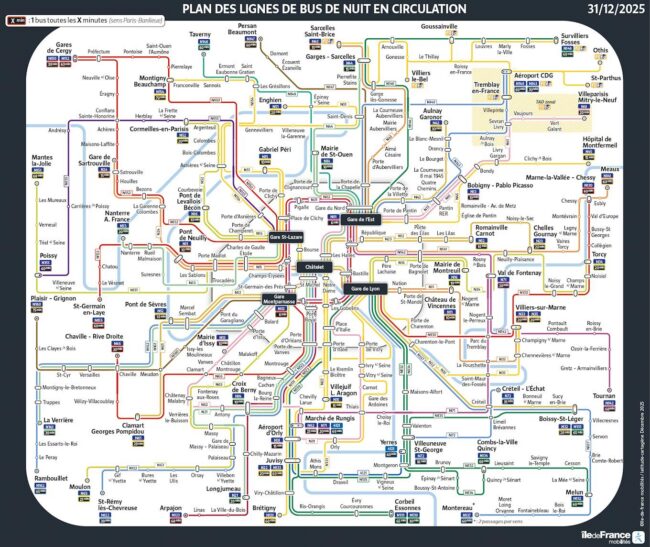 Pour la nuit du 31 décembre 2025 au 1ᵉʳ janvier 2026, les lignes de bus de nuit circuleront comme une nuit de week-end classique.