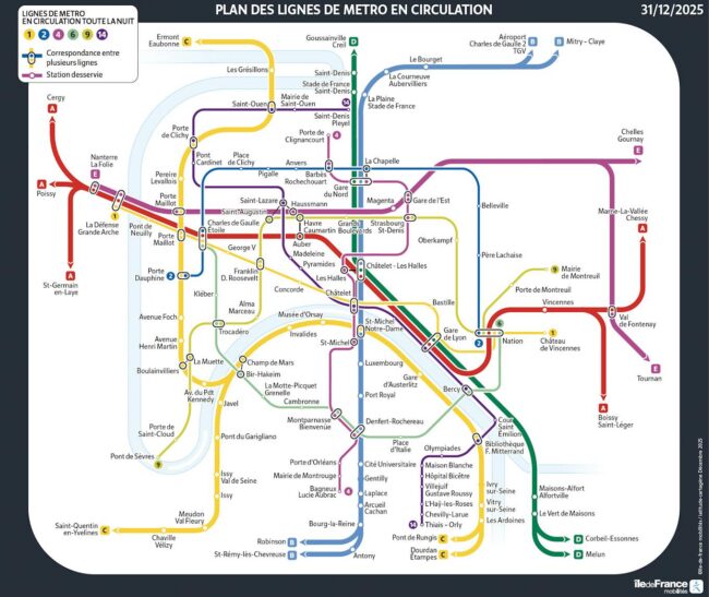 Nuit du 31 décembre 2025 : plan des lignes de métro en circulation