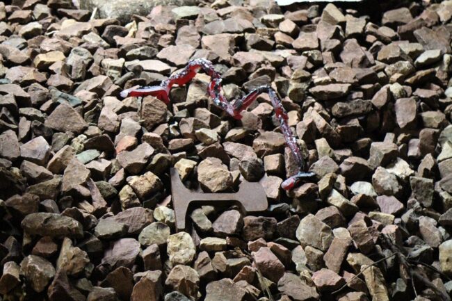 Ici, un résidu de soudure encore incandescent, directement sorti de la soudeuse electrique.