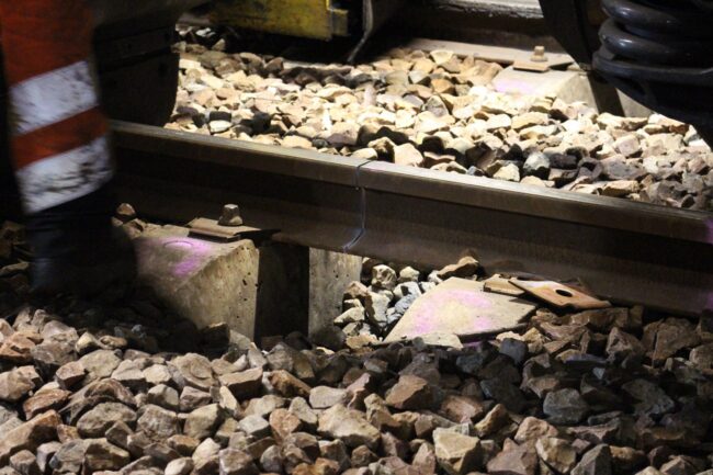 C’est alors que les techniciens vont pouvoir retirer les anciennes semelles de rail pour les remplacer par des nouvelles.
