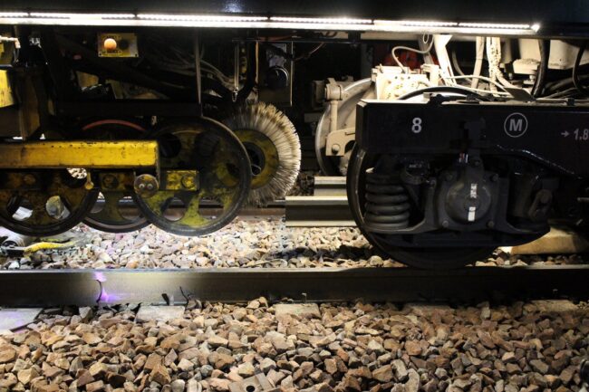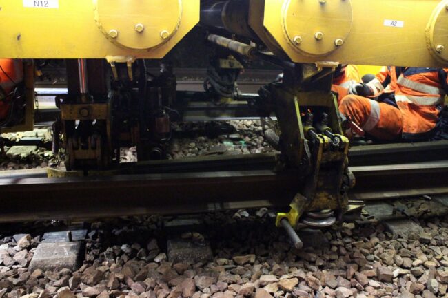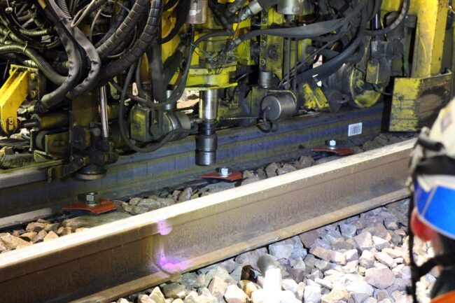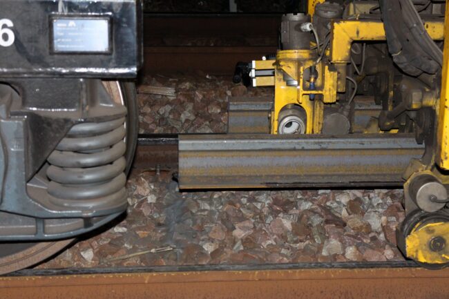 Lorsque la nouvelle barre de rail est installée, une polisseuse va venir polir/désoxyder la surface du rail pour assurer un contact idéal avec les roues des trains qui circuleront dessus.