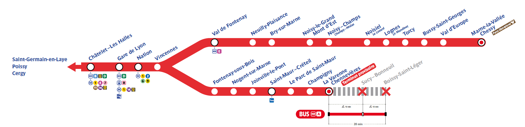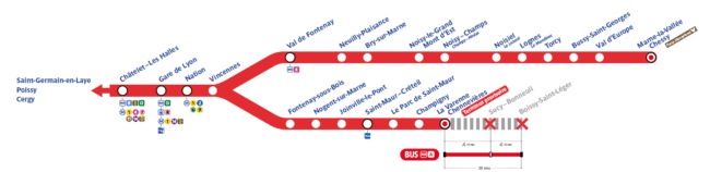 Des bus de remplacement seront mis en place entre La Varenne-Chennevières et Boissy-Saint-Léger, avec des arrêts à proximité des gares concernées (La Varenne-Chennevières, Sucy–Bonneuil et Boissy-Saint-Léger)